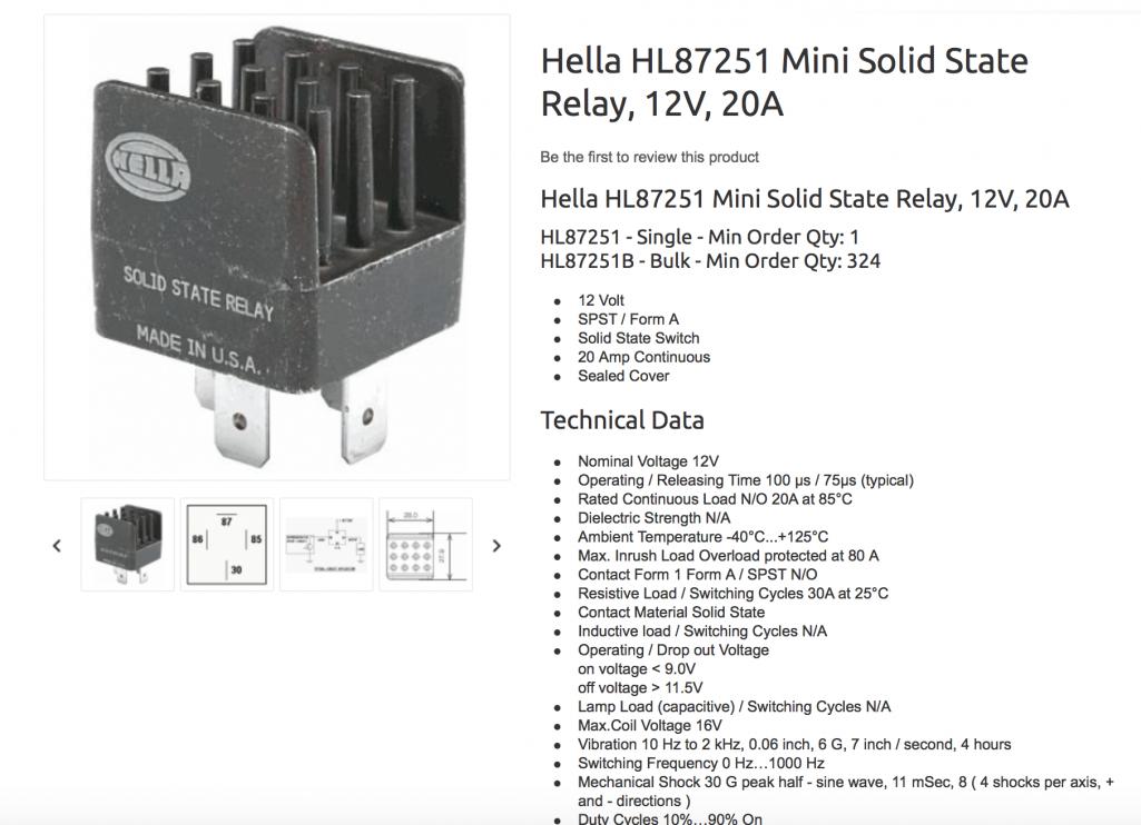 Testing with the hella solid state relay to control most fuel nitrous line lock and trans brake solenoids and the hella relay is well suited to these.
